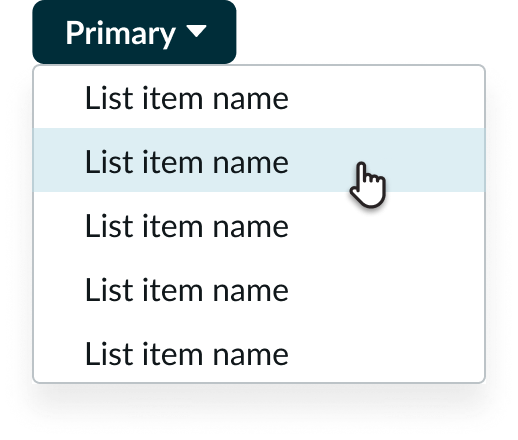 - Dropdown list container: Container that holds the dropdown list items; opens when a user selects the trigger in the dropdown component