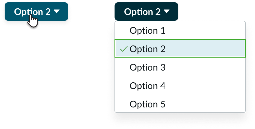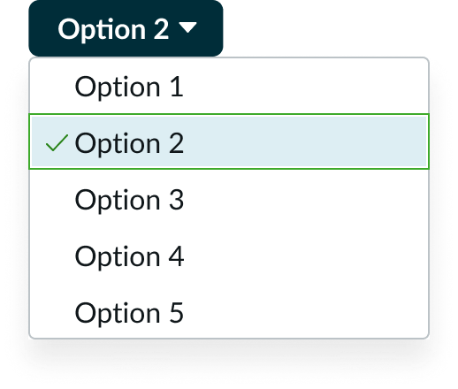 By selecting the dropdown trigger again, a user can view their selections in the dropdown list. A checkmark icon appears next to each selection. Whether the selection replaces the dropdown trigger label depends on the dropdown configuration you choose.