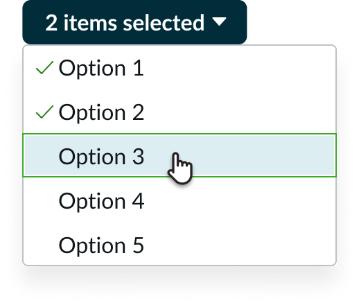 - Selected state icon: The selected state icon appears to the left of the option label when a user selects an option from a multiple-select list