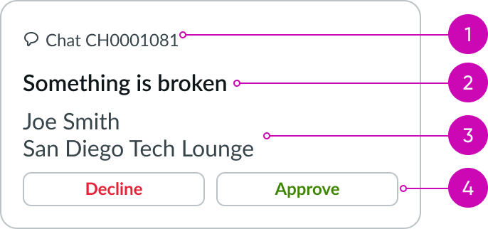 Use the omnichannel template card when you want the user to take an action on an object, like accepting or declining an event.