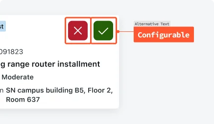 Ensure all cards icon buttons and images (where applicable) have descriptive alternative text. Use the provided fields in the component settings to add alt text.