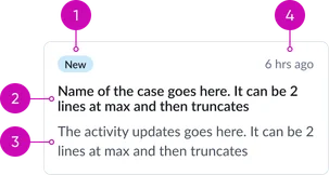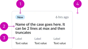 - Short description: A brief and concise summary of the case's subject matter, providing enough context for the user to quickly understand the issue without needing to open the full record. Truncation should be implemented gracefully with a visual cue (e.g., ellipsis).