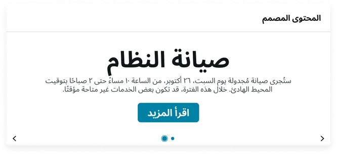 - Navigation controls (arrows): Buttons for moving between different announcement slides in the carousel.