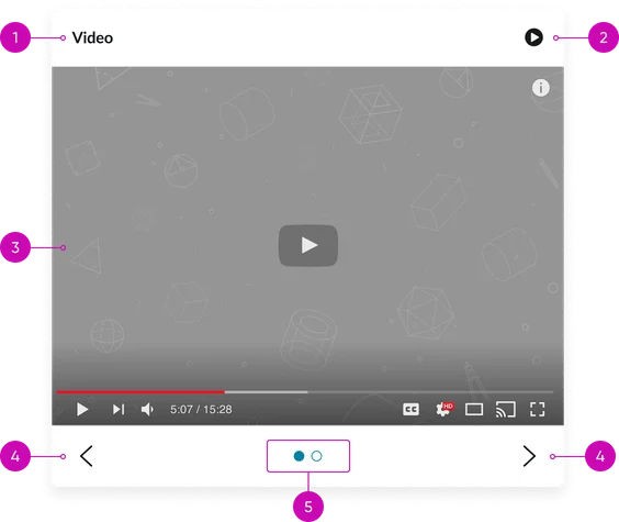 The Video carousel widget is used for portals requiring video content that benefits from a sequential, visually appealing presentation.