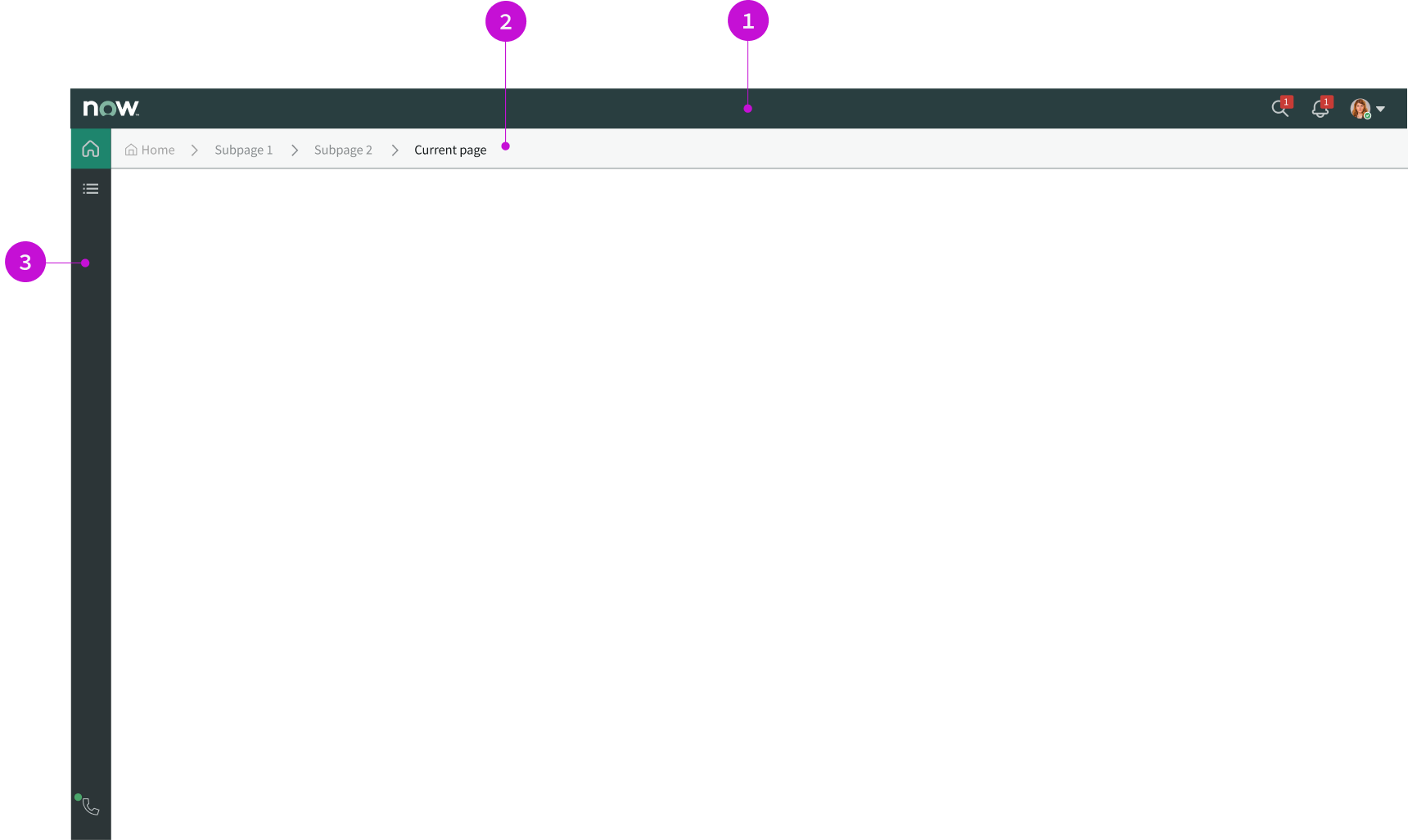 - Breadcrumbs: The breadcrumbs component; helps users keep track of their current location as they navigate through pages