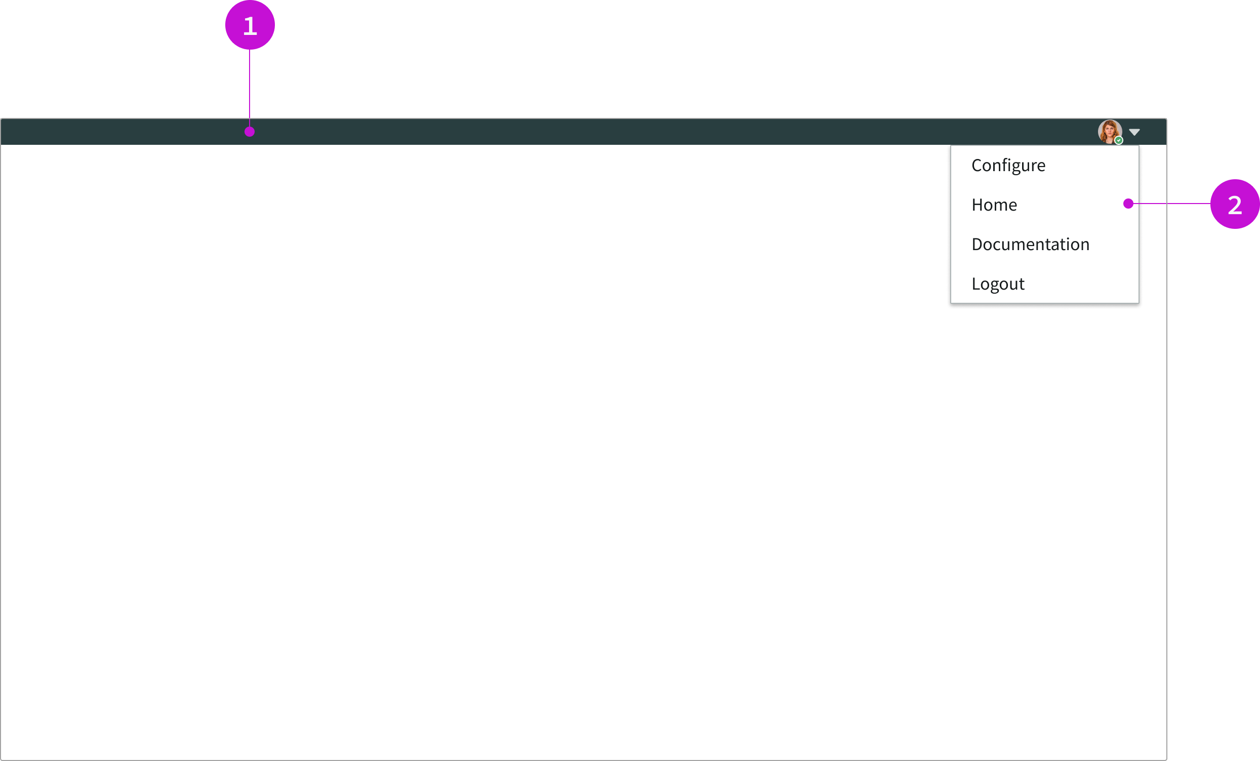 Users can only interact with the user menu. To open the user menu, users select the avatar in the heading.