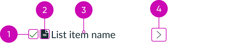 - Icon (optional): Can be used in a list item to further illustrate the context and help distinguish between list items