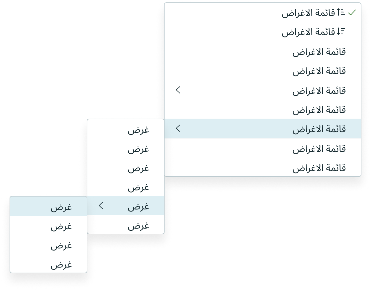 When the display translates to a right-to-left (RTL) language, the nested menu appears to the left of the parent menu. The chevron icon is flipped to use chevron-left.
