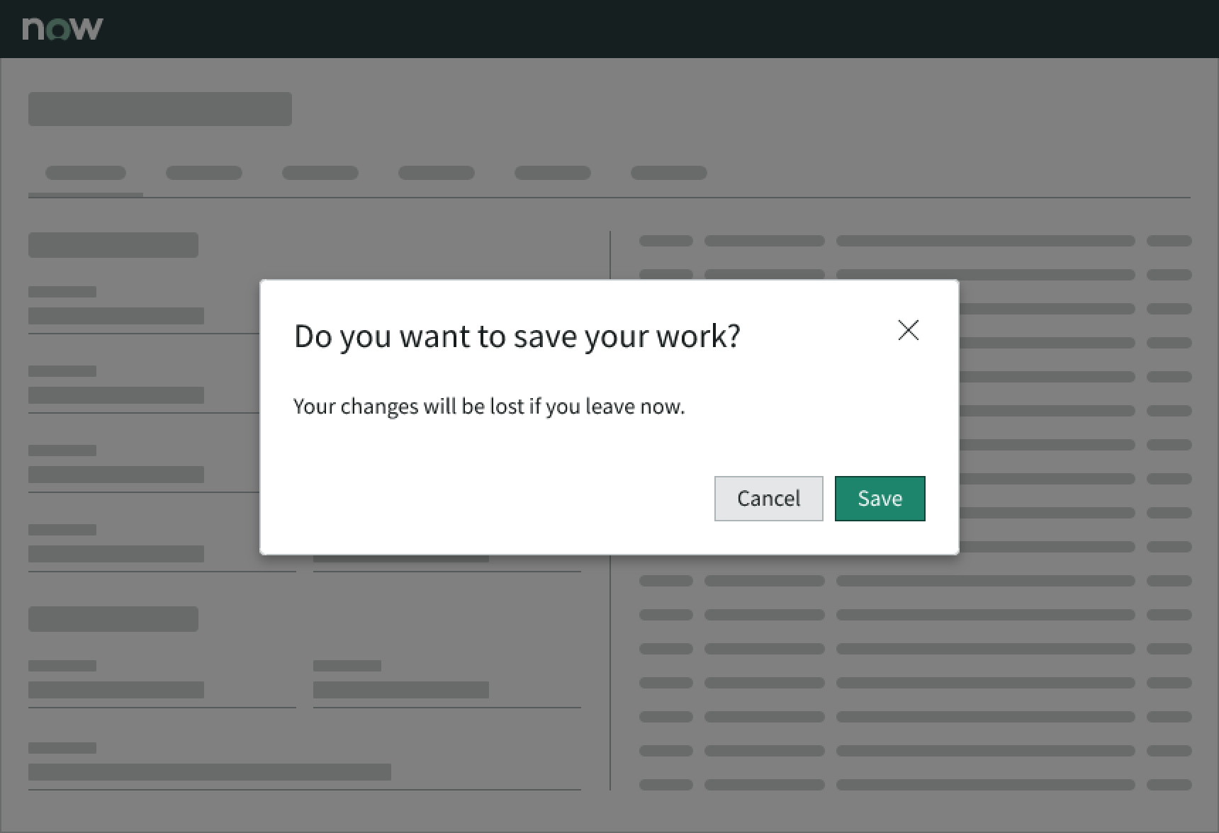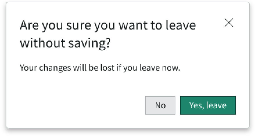 There is a special version of a confirmation modal when a user decides to leave a page without saving.