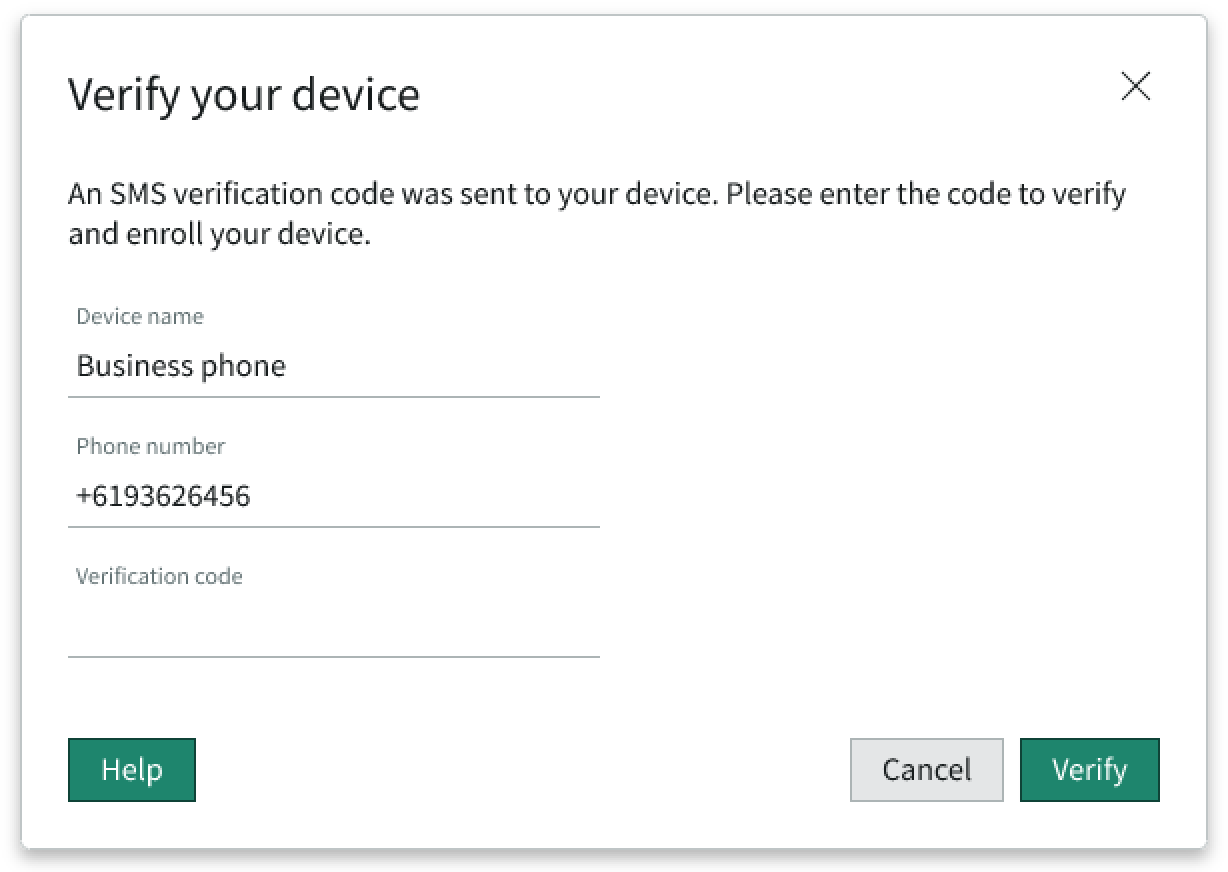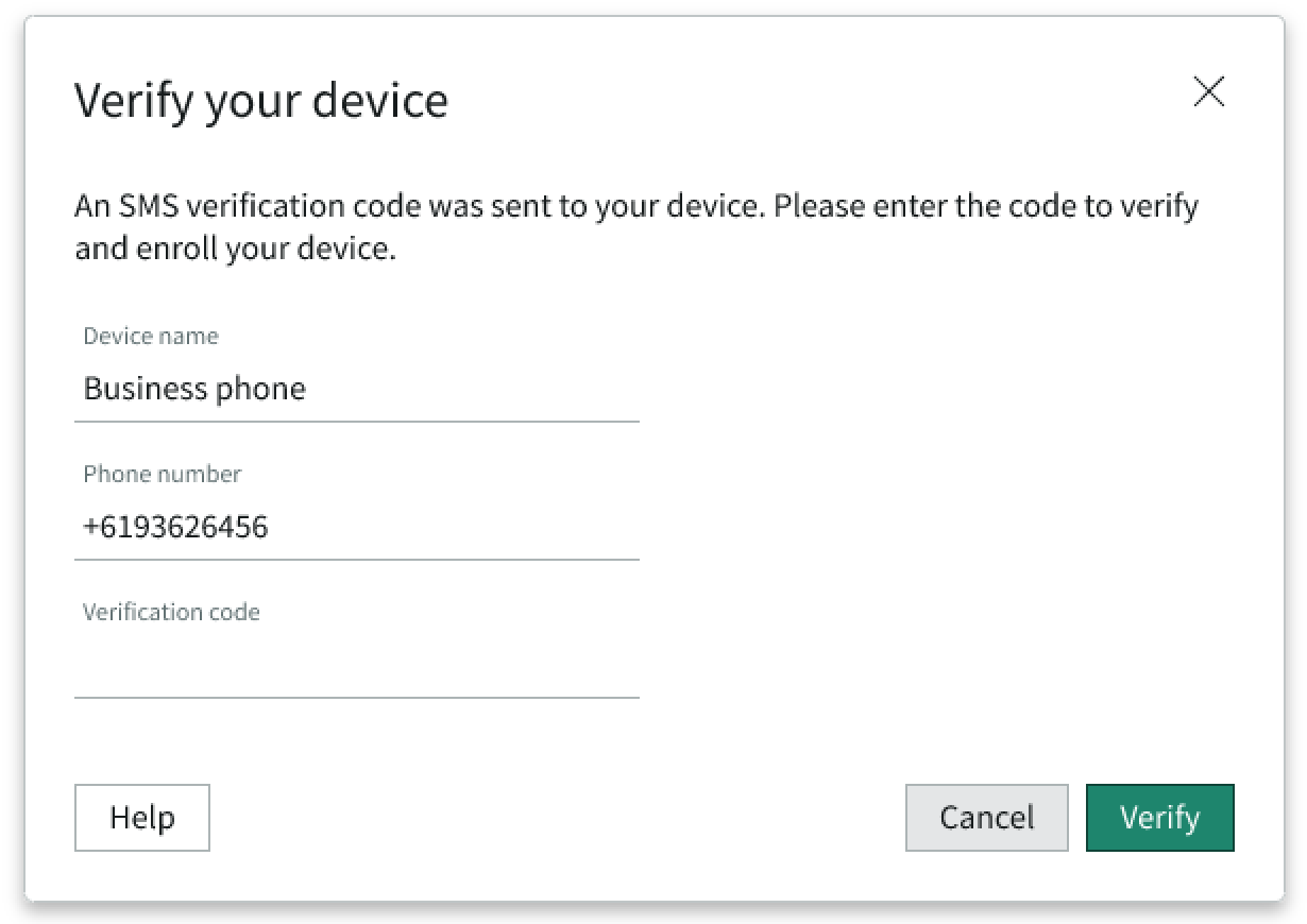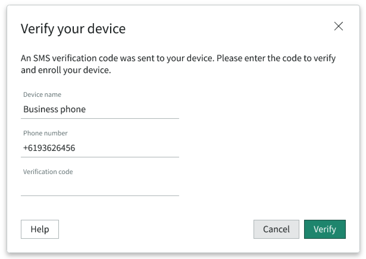In this example, the user needs to verify their device before they can go to the next step in the process.