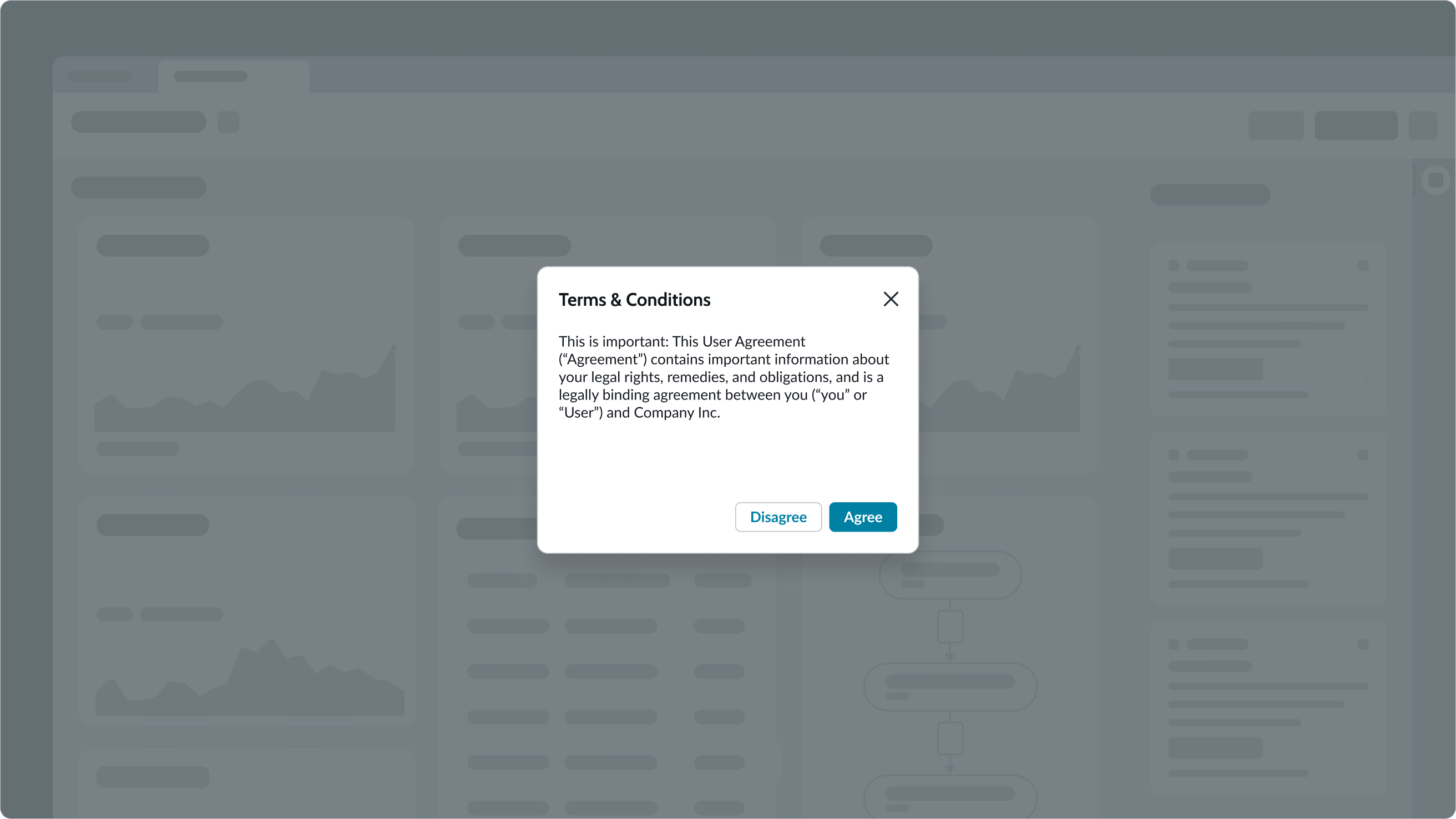 Additionally, you can use a modal to verify a user’s action. This modal appears when a user takes an action or makes a choice that is typically irreversible. The modal helps prevent any damages if the user made the choice by mistake. Use confirmation modals only for user-initiated actions that are irreversible or have a big impact on their workflow.