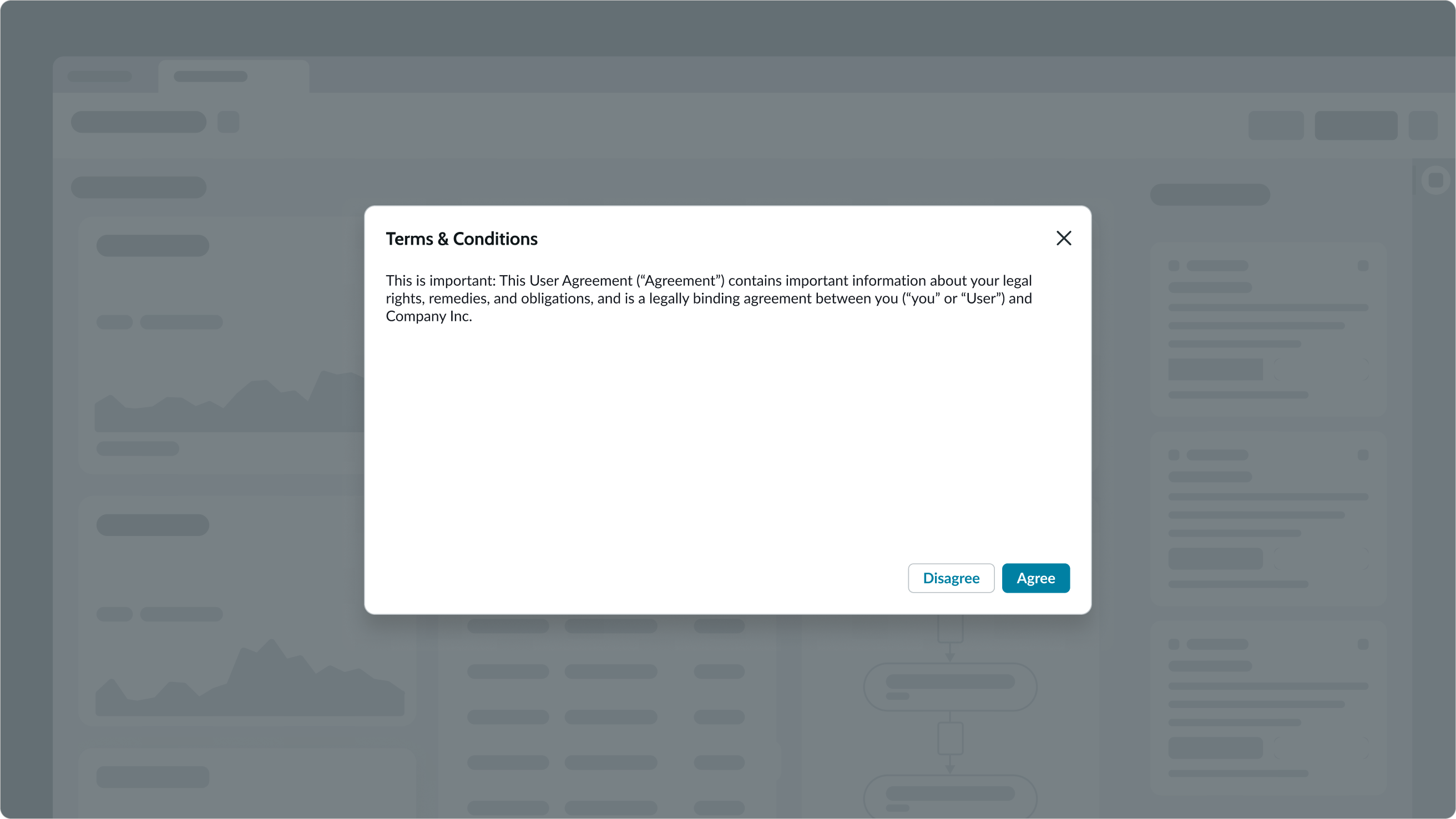 When the user opens a modal, a semi-transparent shade appears over the existing content to indicate that it's no longer interactive or accessible.
