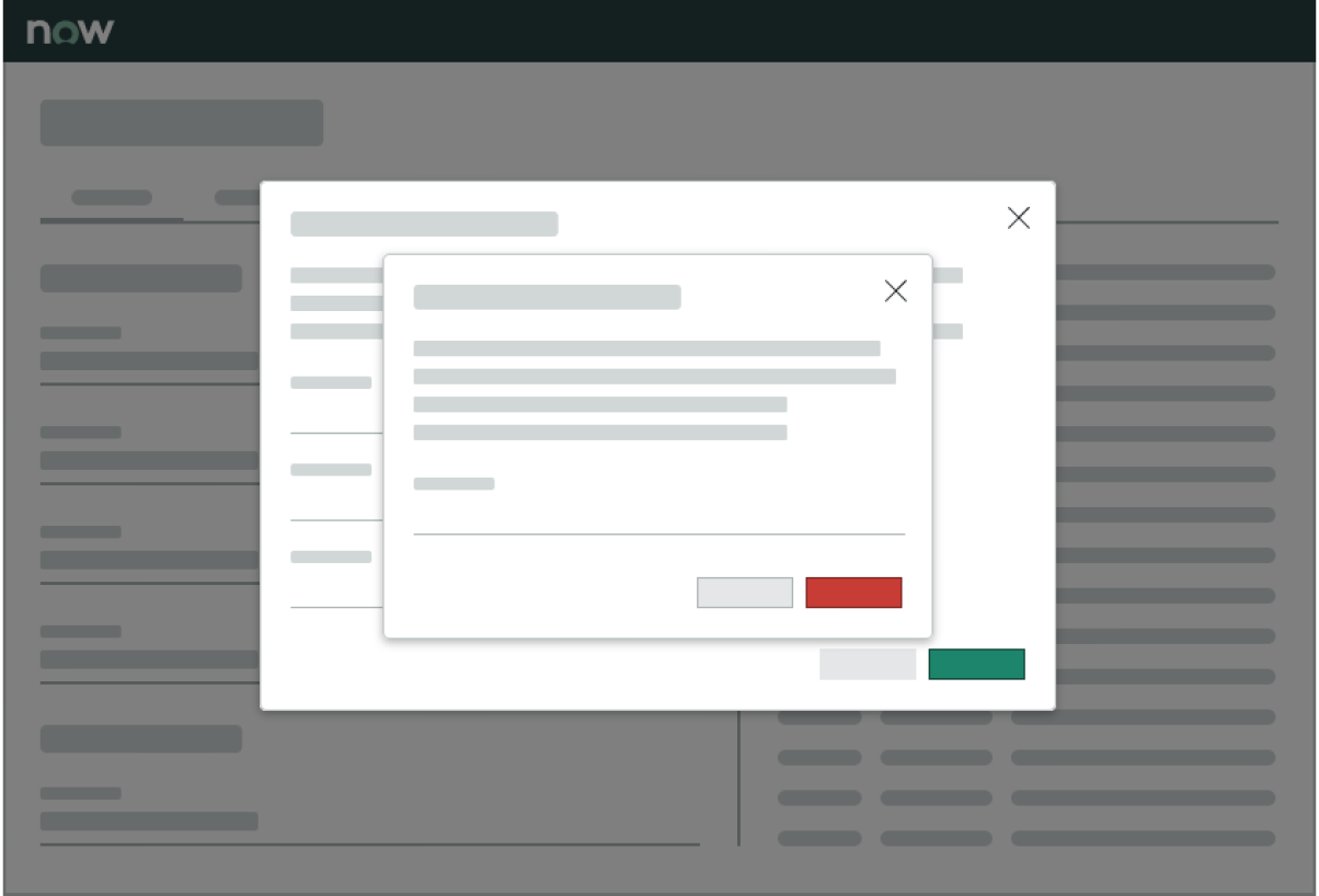 Avoid displaying a modal on top of a modal because it creates confusion around which actions relate to which content.