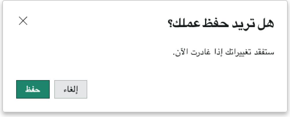 When the display translates to a right-to-left (RTL) language, the modal content will flip. The close icon appears on the left, and the modal title and content aligns on the right.