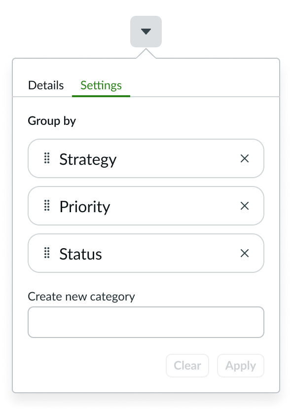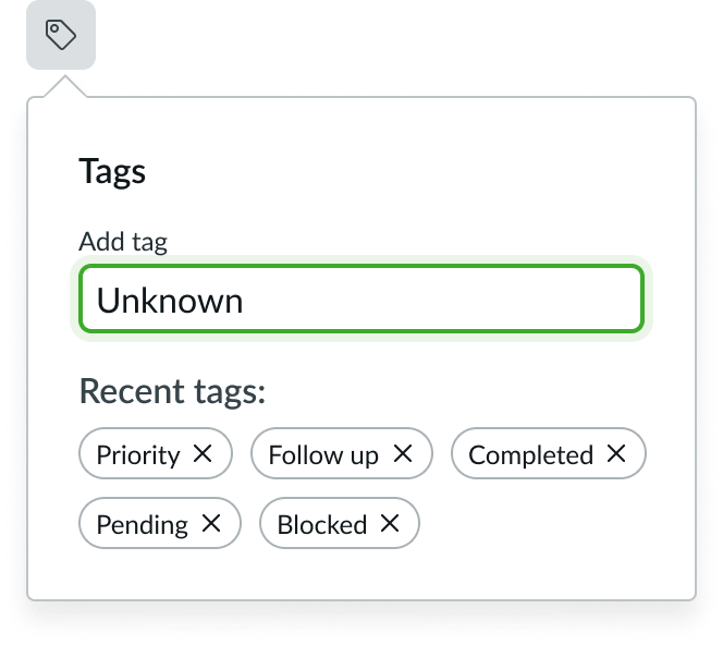 In this example, a popover uses a text input field and a pill subcomponent to add tags.