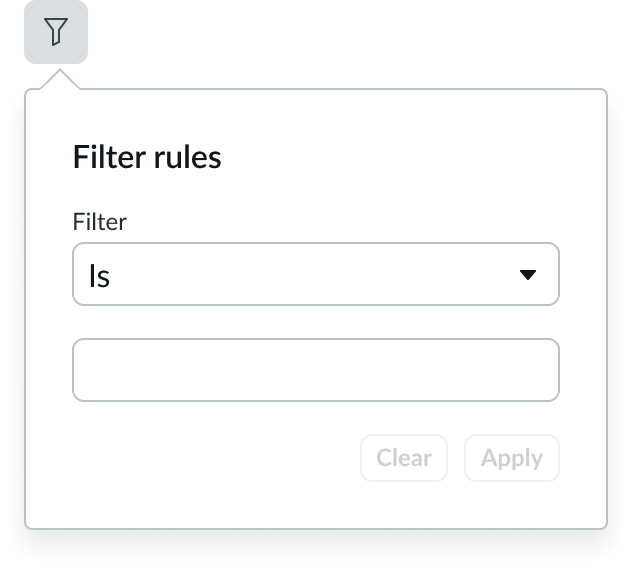 In this example a popover uses inputs and buttons as filter controls.