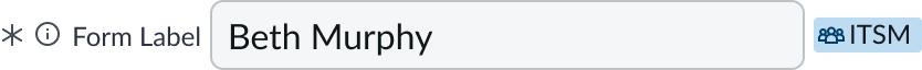 You can configure an input field as required with an asterisk indicator after the form label. The user must enter a value in a required field to complete the form. When the user hovers over the asterisk, a tooltip appears and displays "Required."