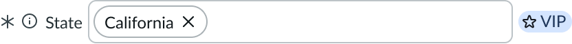 You can configure an input field as required with an asterisk indicator after the form label. The user must enter a value in a required field to complete the form. When the user hovers over the asterisk, a tooltip appears and displays "Required."
