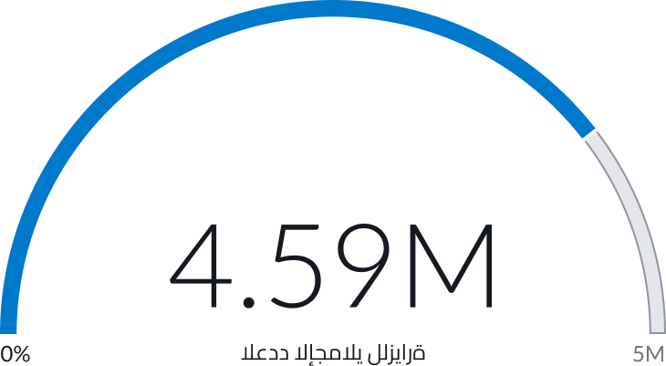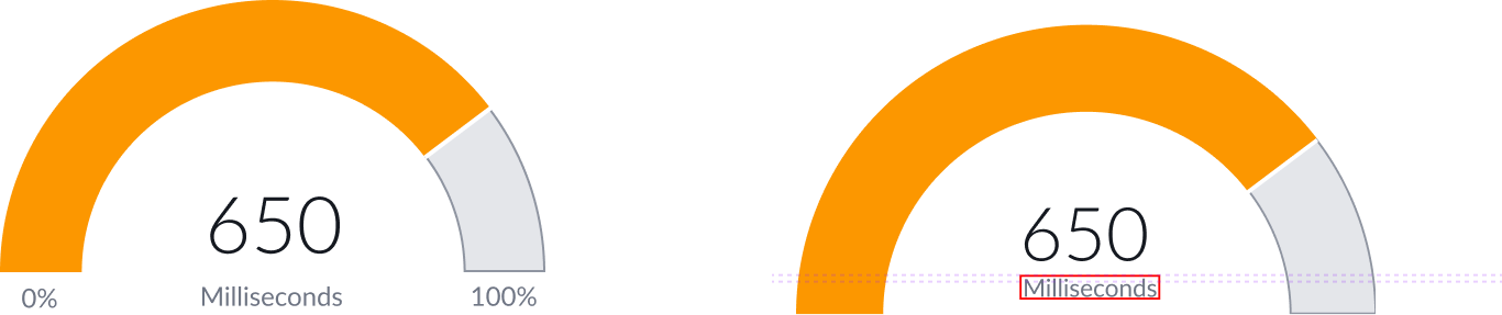 When a dial chart is internationalized to a right-to-left (RTL) language, the chart unit value label reads from right-to-left. The dial still flows from left to right with the minimum value on the left and the maximum value on the right.