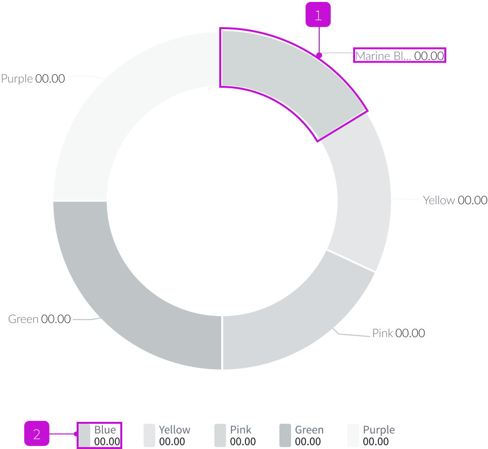 - Data label (optional): Combination of a legend, value, or a percentage