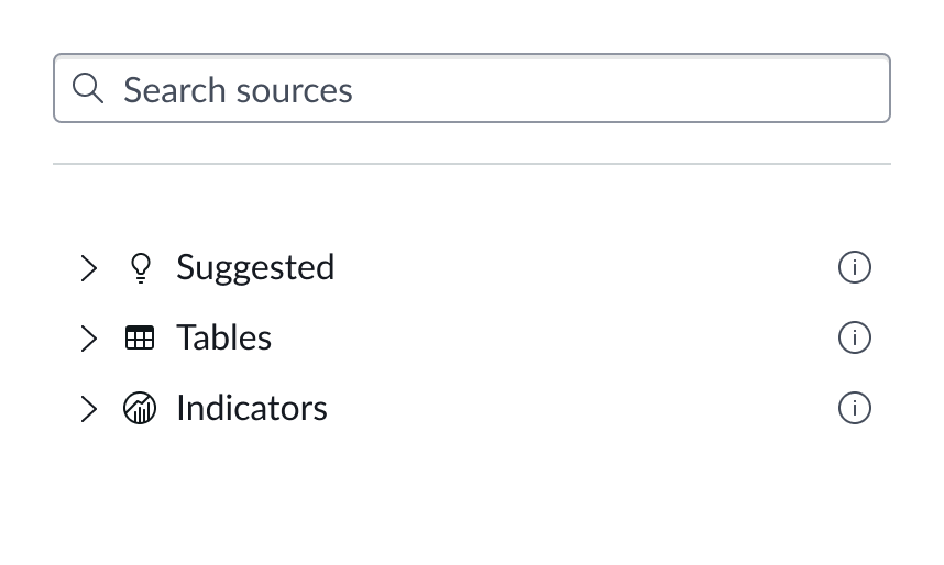 You can select between 3 different data sources for your visualization: system data tables, preconfigured Performance Analytics indicators, and User Experience Analytics. If you are changing your data source, the option list provides suggestions based on previous selections and items that match your search.