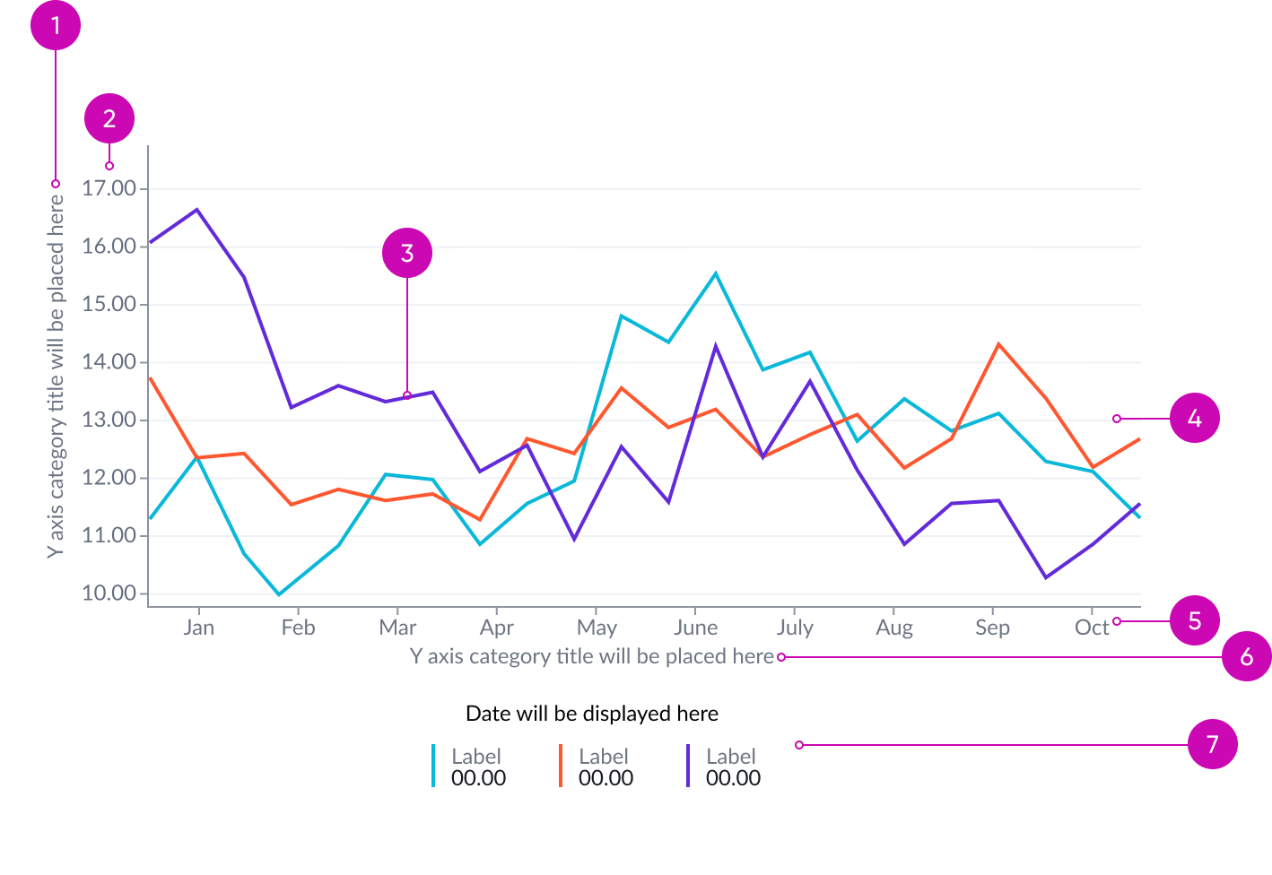 - Y-axis title: Chart axis label that identifies the values or measurements of the y-axis