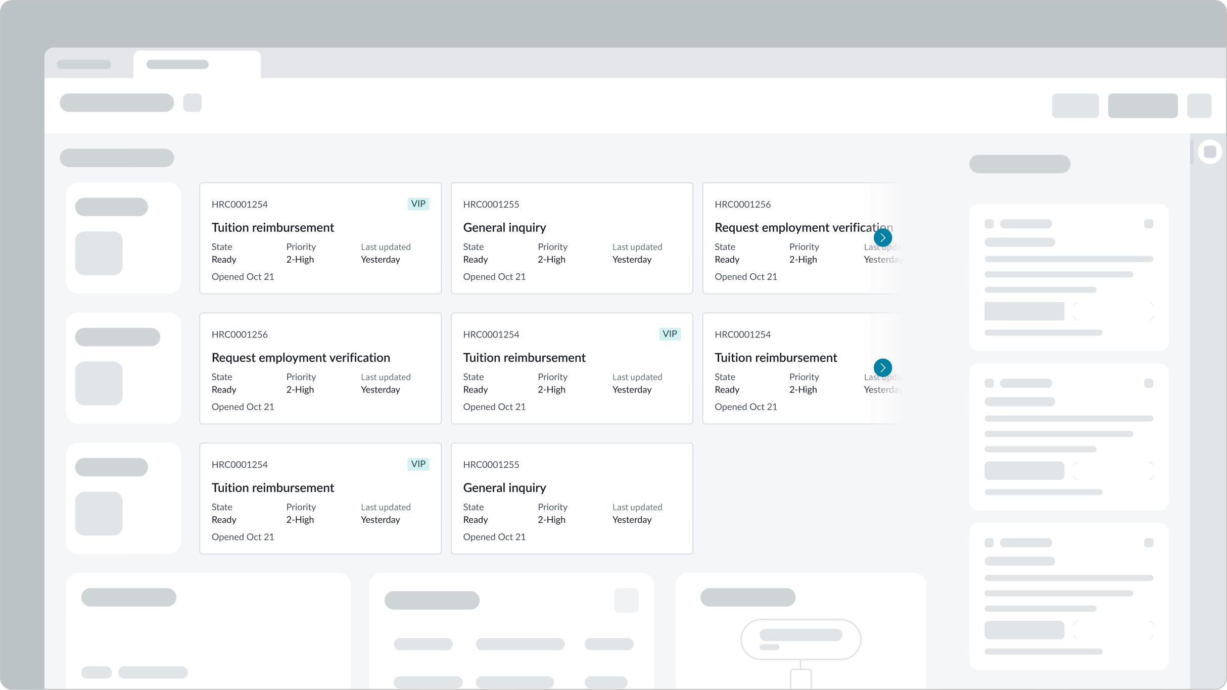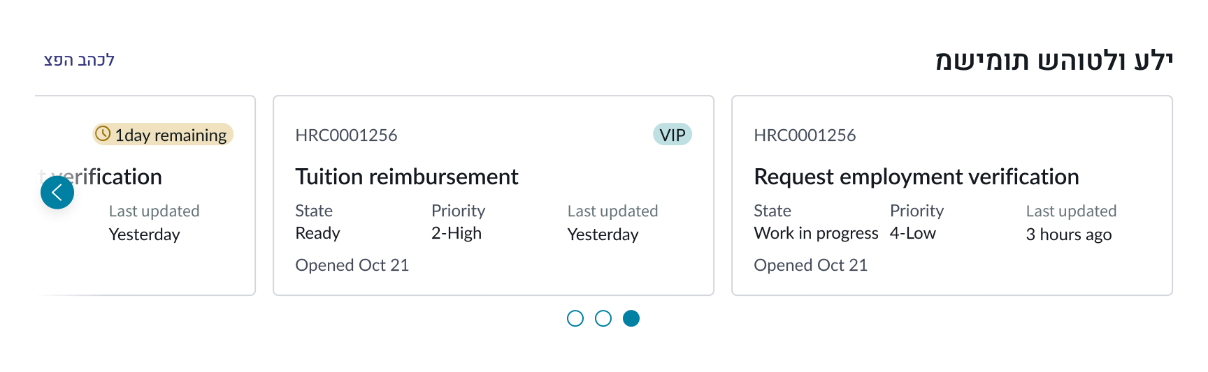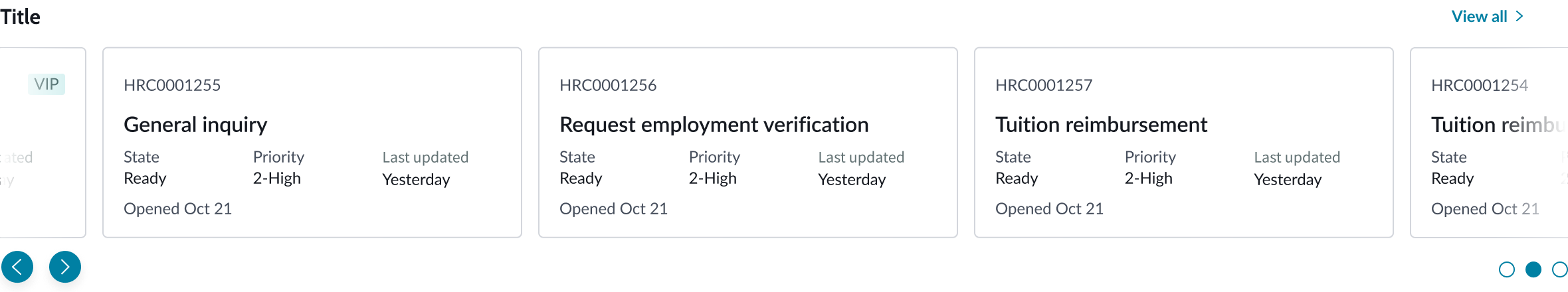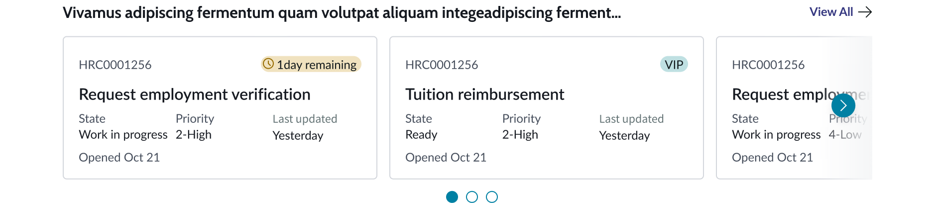 In the image above, carousel is used twice to display recently viewed pages and relevant requests.
