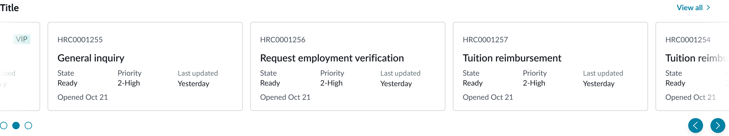 - Carousel item: An item in the carousel; can be a card or any other UI Builder component