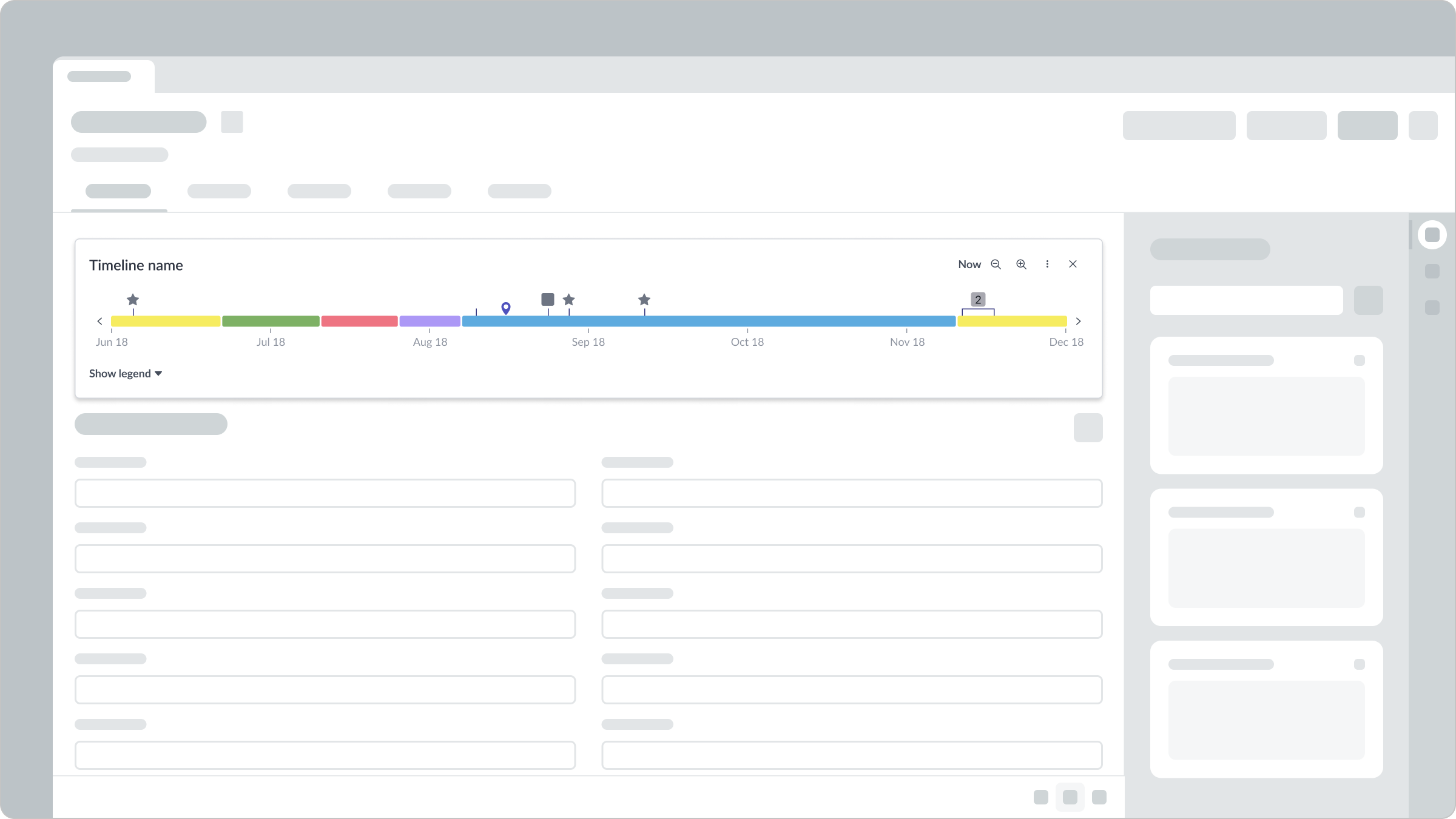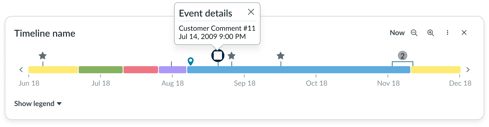 You can also configure the labels within the legend, which directly reference the event icons and range indicators on the timeline. The legend shows all the events and segments in relation to the total timeline (and not just the current view).