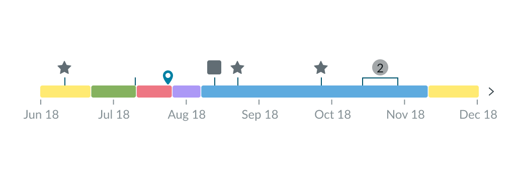 If you show an event on the timeline, you must always include an event icon. You can’t show the event indicator by itself. You can choose any of the icons from the Icon Gallery to visually distinguish each event type on the timeline. It is recommended that you include event icons when you have 2 or more event types.
