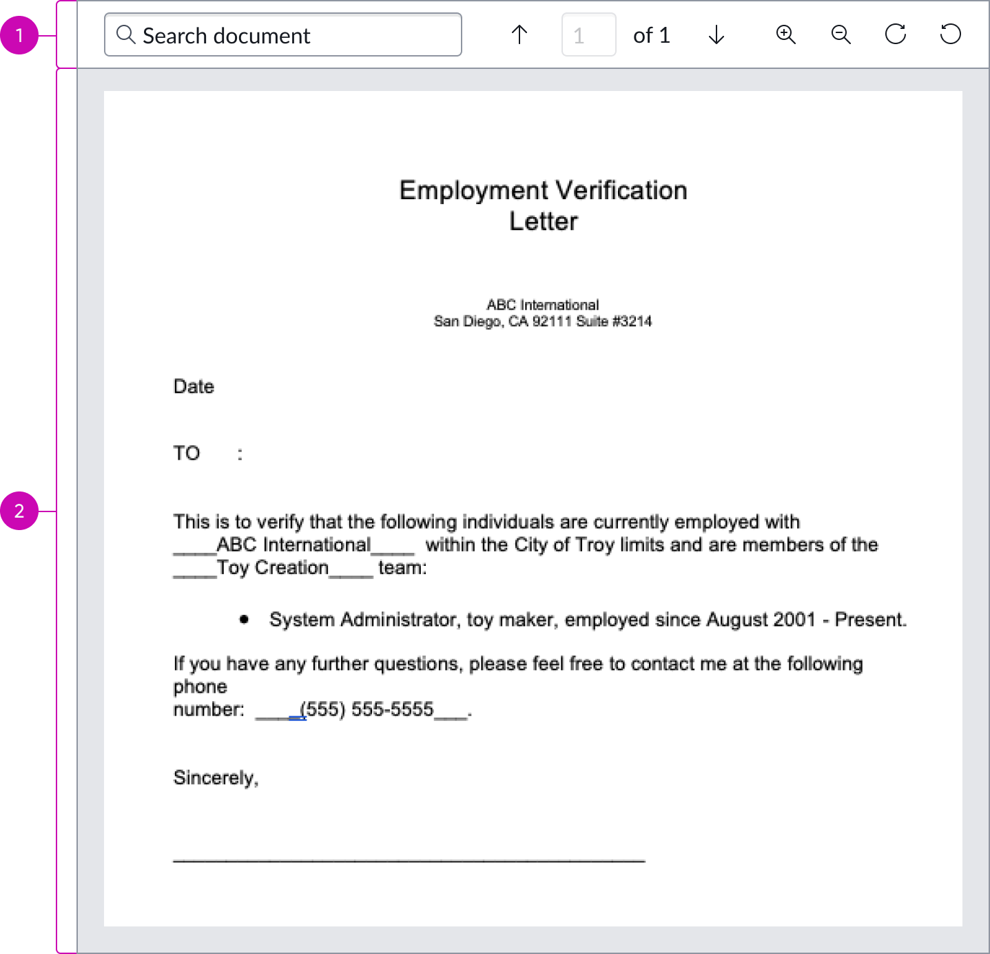 Document display should be placed in a large panel or be shown in fullscreen. Avoid putting document display in a small space, such as a modal.