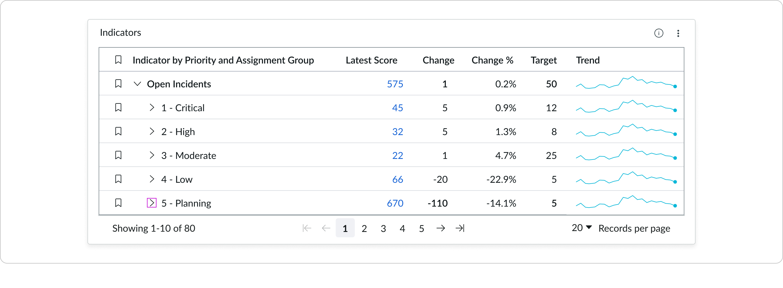 Use the indicator scorecard component to help users easily view and access indicators directly from a page.