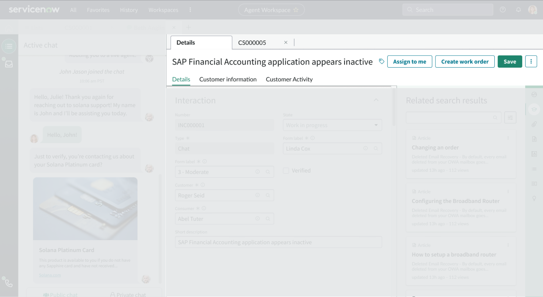 - Related search results (agent assist), attachments, and templates can also appear as tabs in the sidebar.