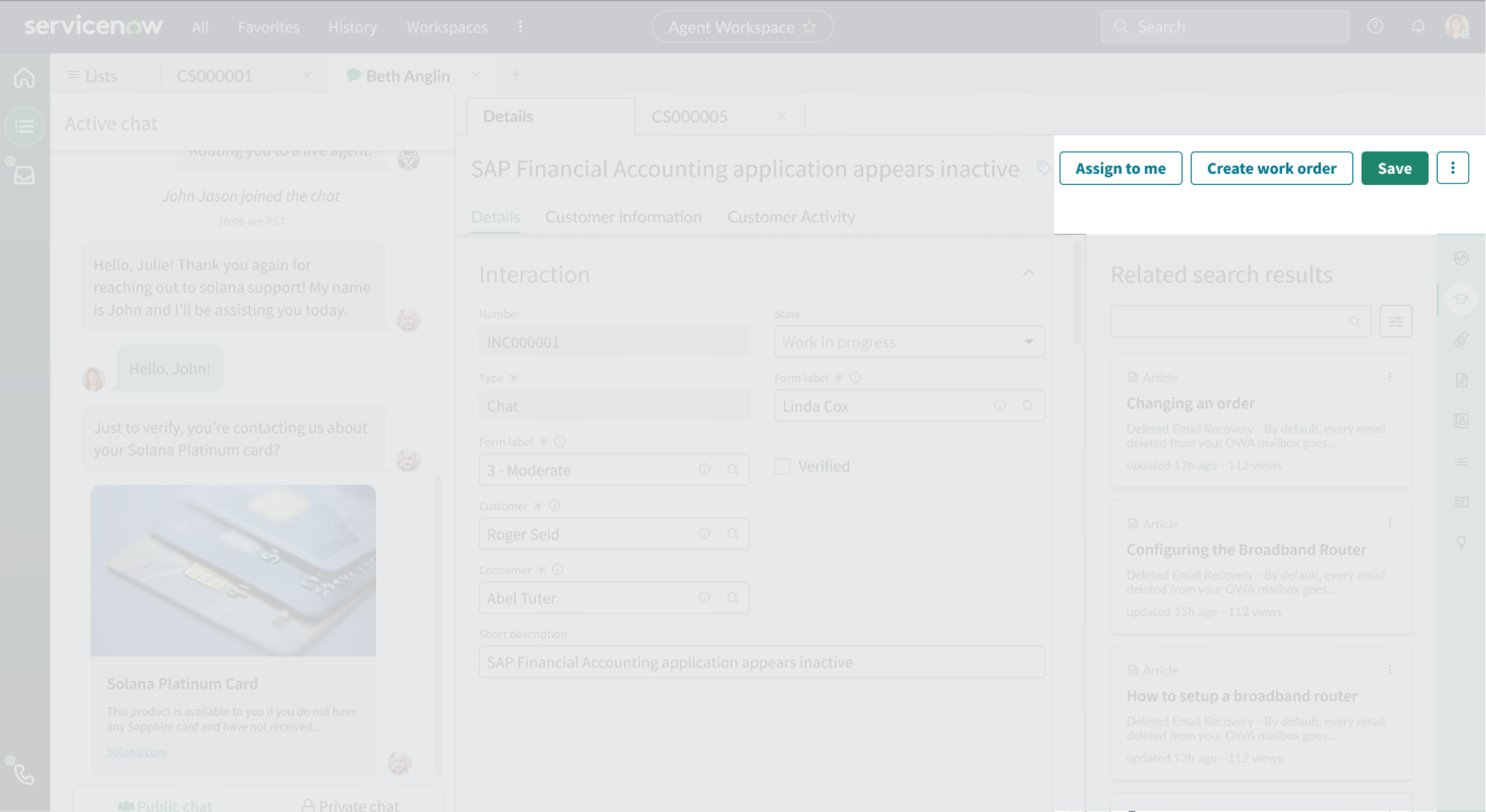 - Buttons: “Assign to me,” “Create work order,” and “Save” actions