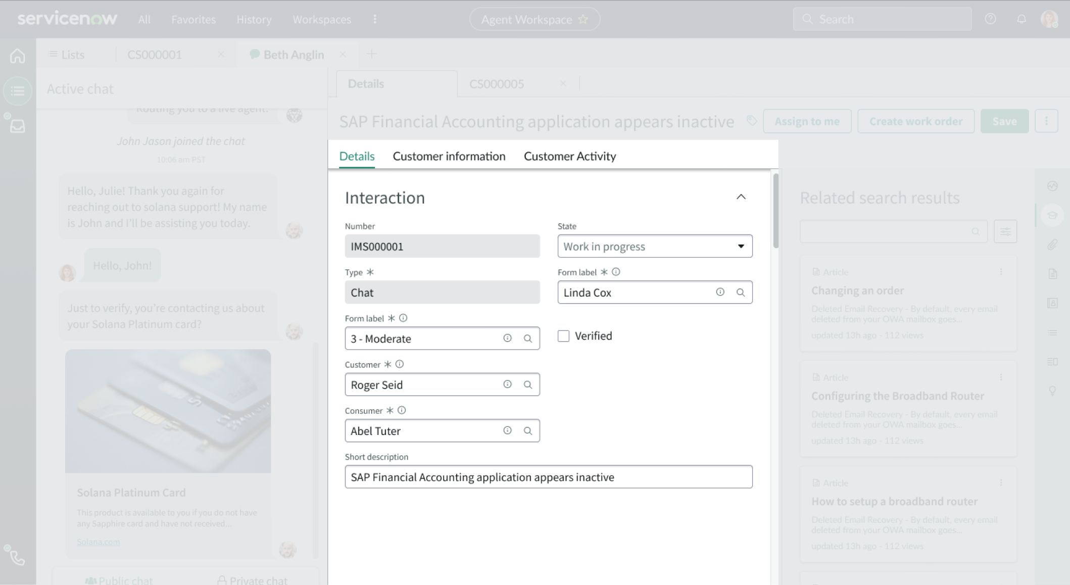 - Users can use the “Look and Verify” option from the sidebar to find a customer to link to the interaction record. Linking a customer to the record adds the “Customer information” and “Customer Activity” tabs to the top of the record.