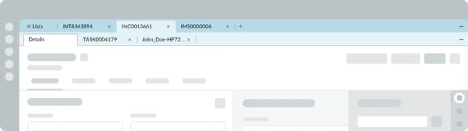 They are automatically provided when you select this shell in UI Builder. They cannot be manually placed. An Admin can configure behavior like persistence and styling in workspace settings. Each primary navigation page opens a primary tab, and each record opens a session tab.